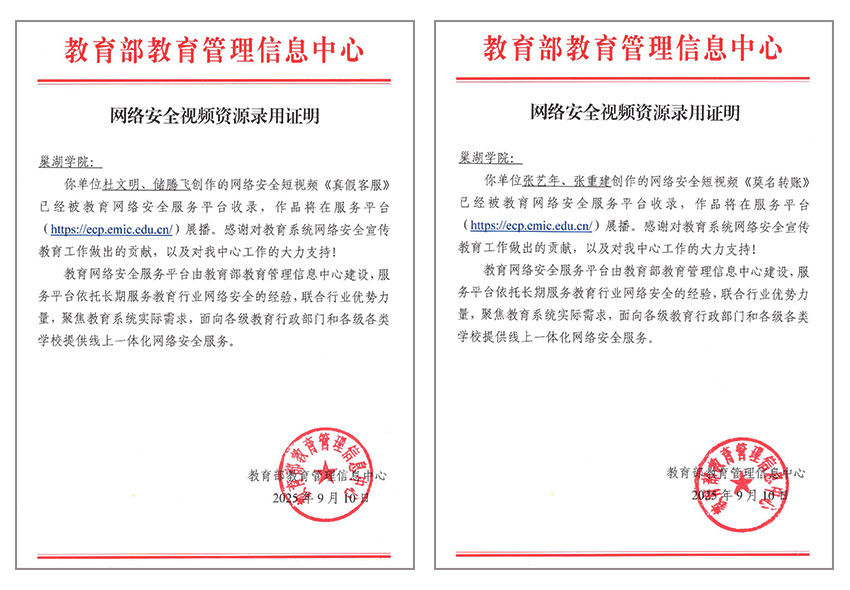 • 巢湖學院兩部網(wǎng)絡(luò)安全教育作品獲教育部教育管理信息中心錄用